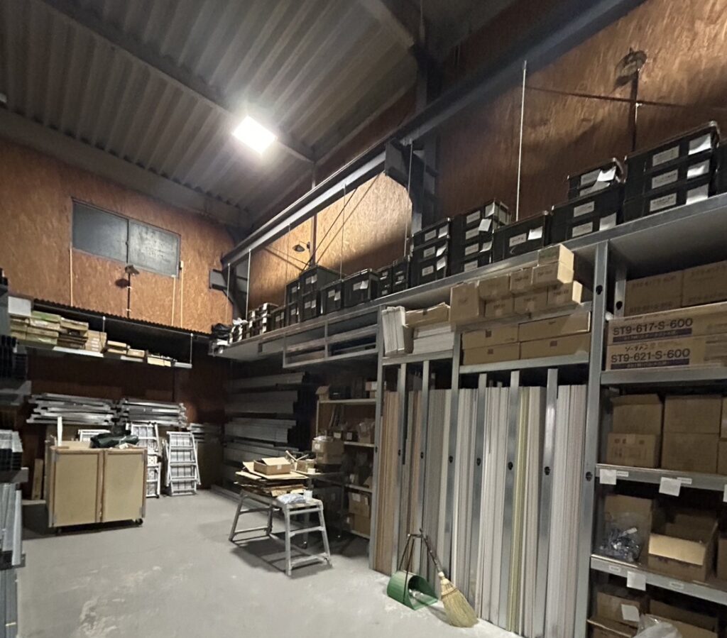 内装工事の天井や壁の下地材として使われる薄い鉄板(Light Guage Steel 頭文字をとってLGS)を造作して骨組みを造ります。以前は材木での大工工事でしたが防火性、施工スピード、安価なことから現在は軽鉄工事が一般的です。
